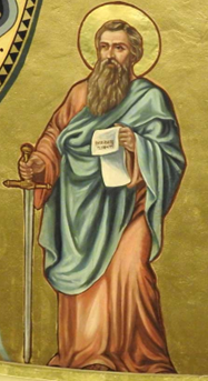 Meanwhile, Paul is identified by his holding a sword. The sword represents the power of the Word of God, which he proclaimed through his writings and teachings. Paul writes in Ephesians, “And take the … sword of the Spirit, which is the word of God” (Ephesians 6:17). The author of the letter to the Hebrews, who is traditionally believed to be St. Paul, uses a similar analogy and further explains why the word of God is connected to a sword, “For the word of God is living and active, sharper than any two-edged sword, piercing to the division of soul and spirit, of joints and marrow, and discerning the thoughts and intentions of the heart” (Hebrews 4:12). Additionally, the sword symbolizes the instrument of his martyrdom, as he was traditionally believed to have been beheaded. Hence, the two remaining figures are identified as St Peter